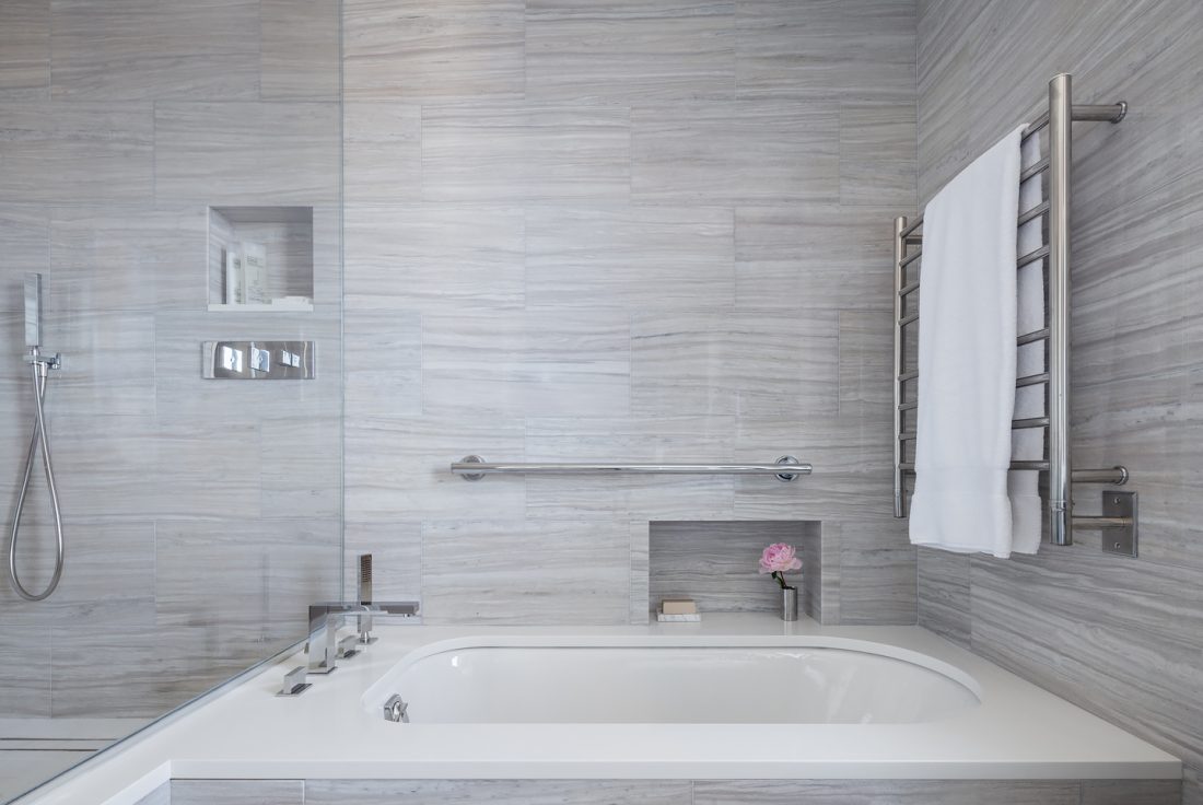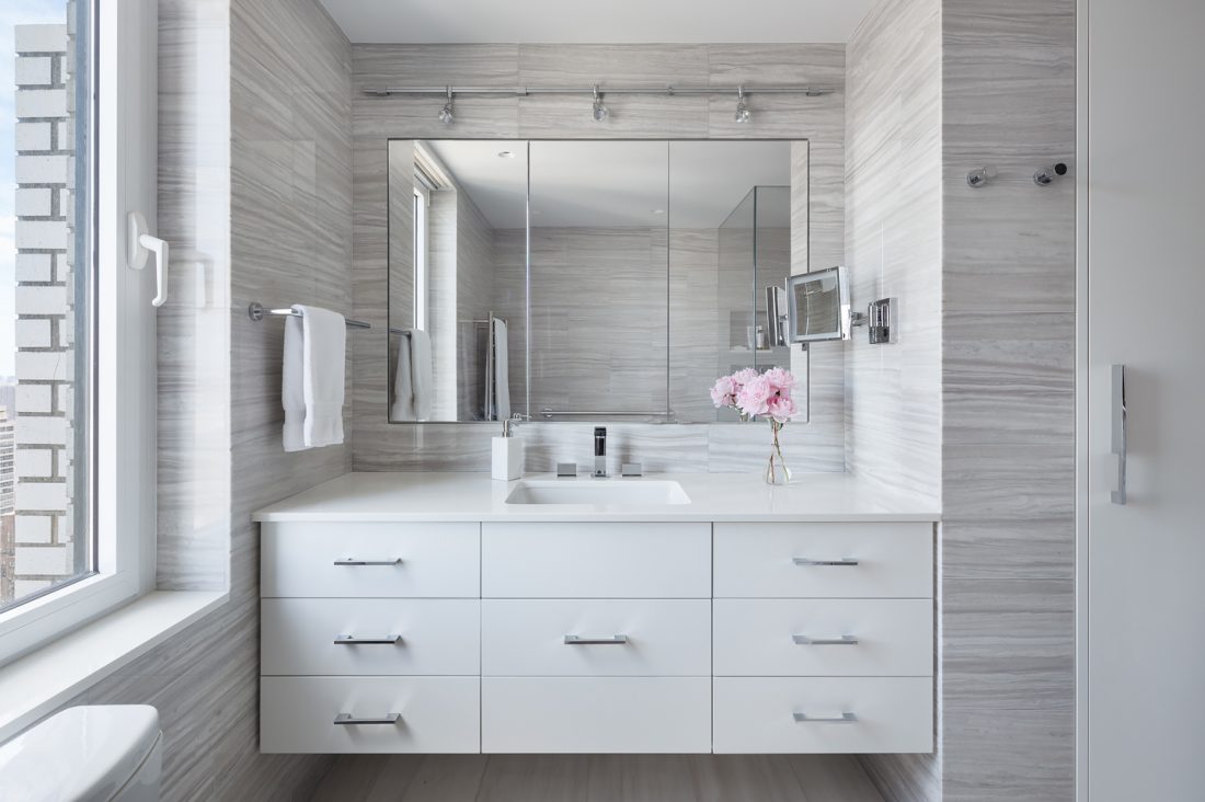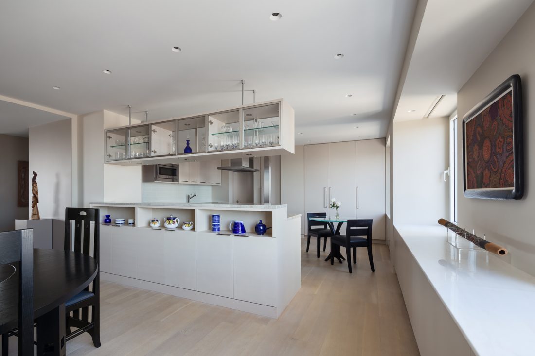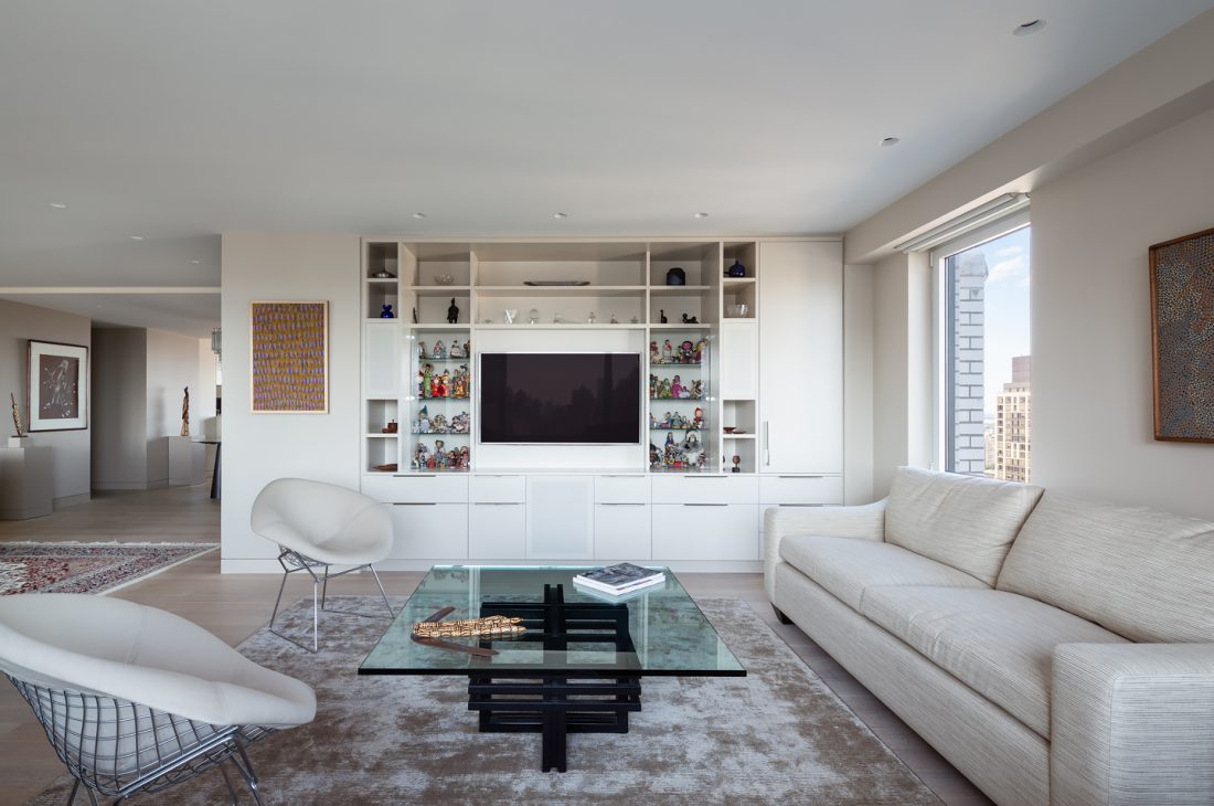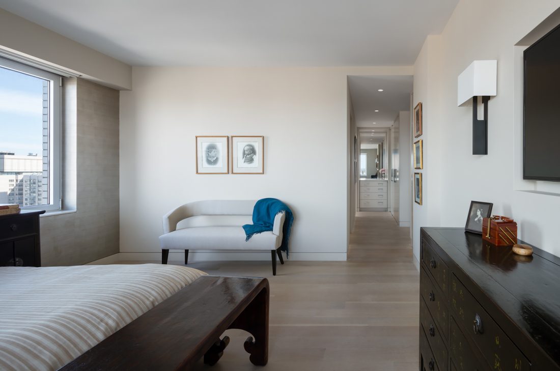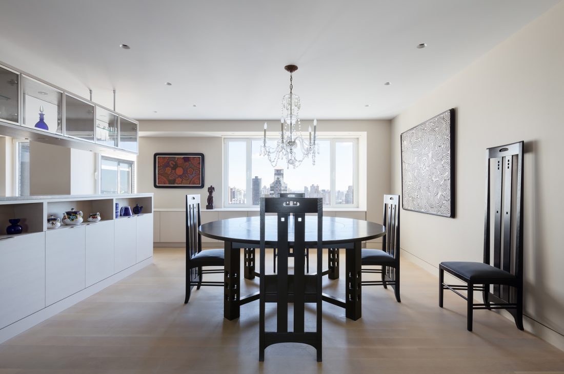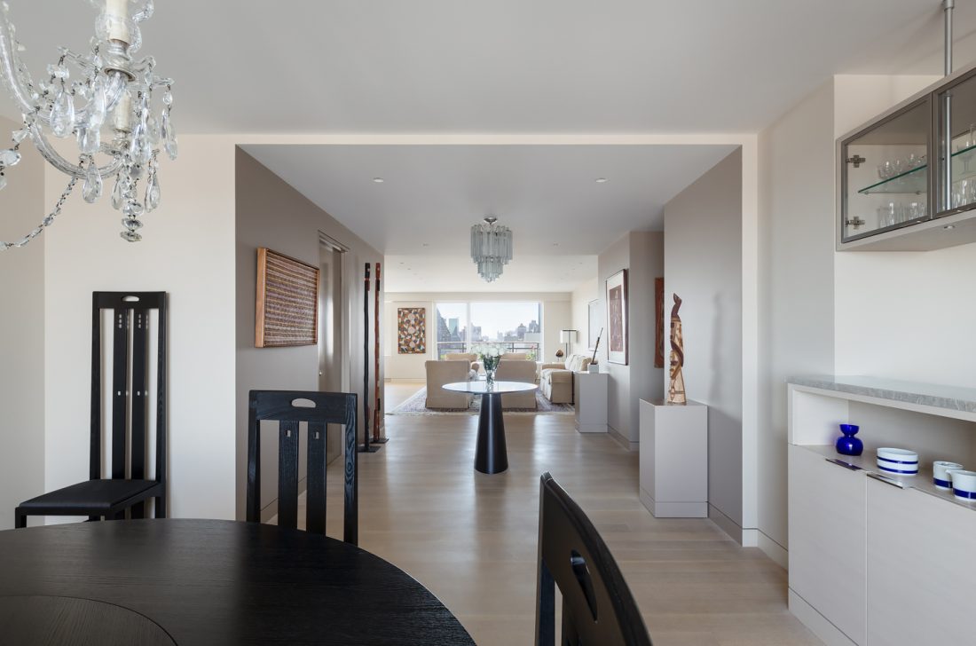 High above Manhattan’s 57th Street, this serene apartment provides calm respite from city life.