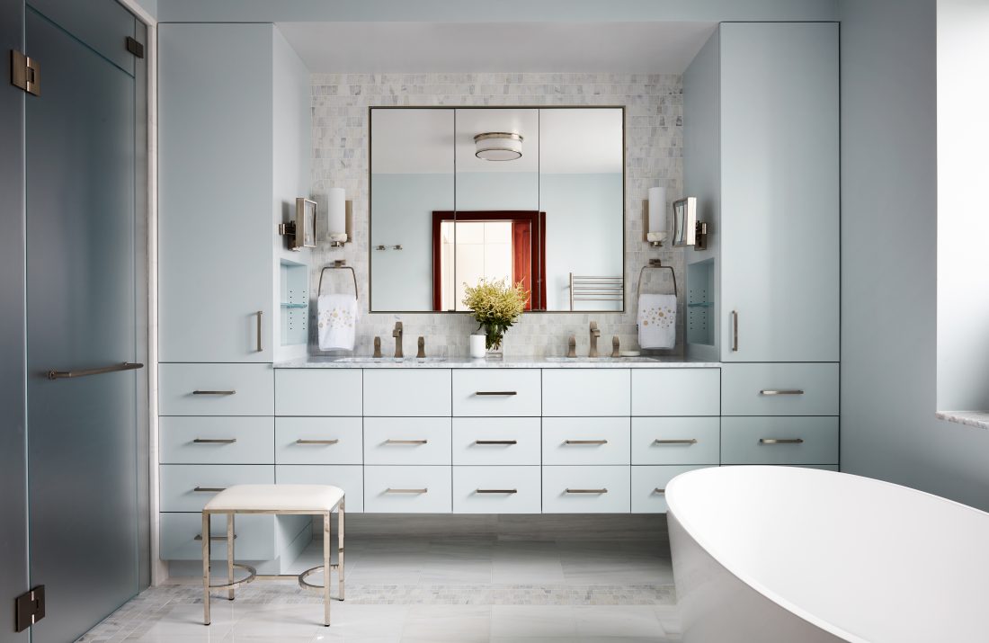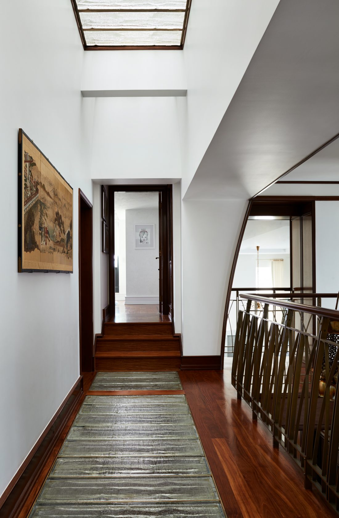 The original plan, modern in concept, needed structural modification of the existing stair connecting to in-law apartment. Lighting, baths, kitchen, built-ins were updated to clean and contemporary lines, while incorporating the rich design of the original doors, trim, main stair, and floors. The renovated project was recently published by Architectural Digest.