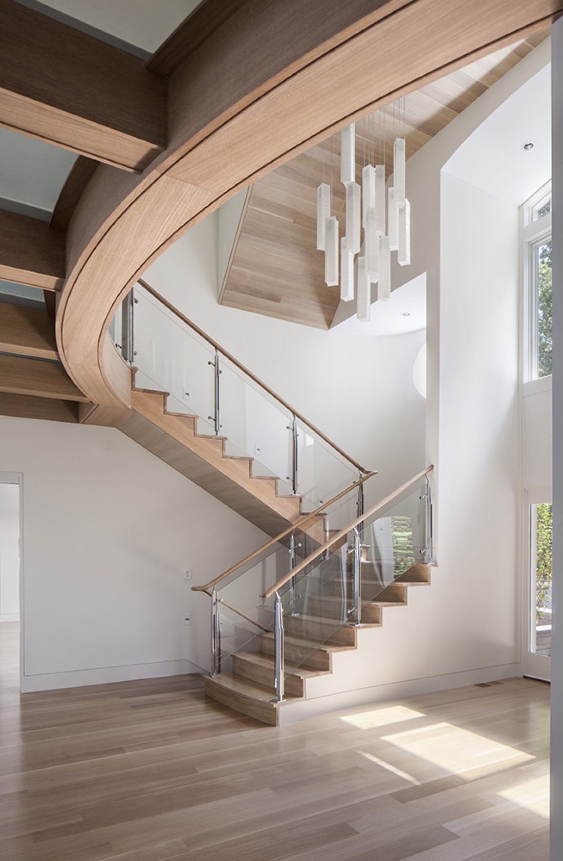 Similarly on the interior floors, doors, stairs, kitchen and baths were replaced to create a dramatic modern home.