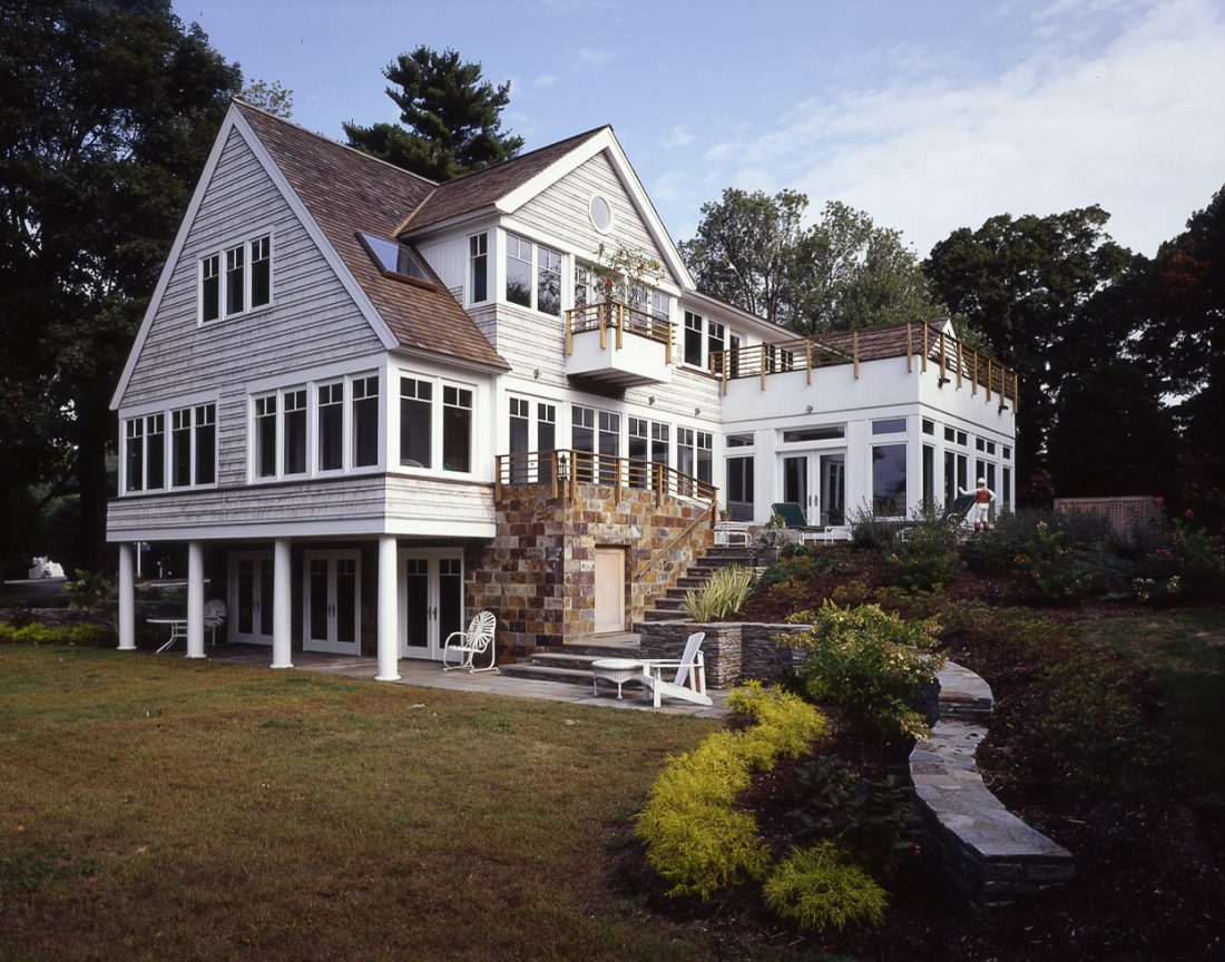 Located a few hundred feet from Long Island Sound, this gracious home maximizes views of the water from its southerly facade.