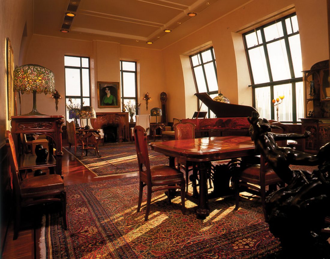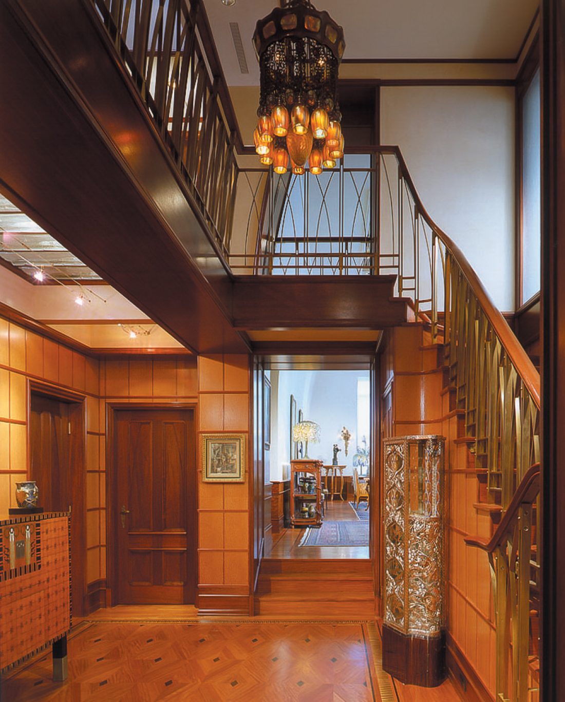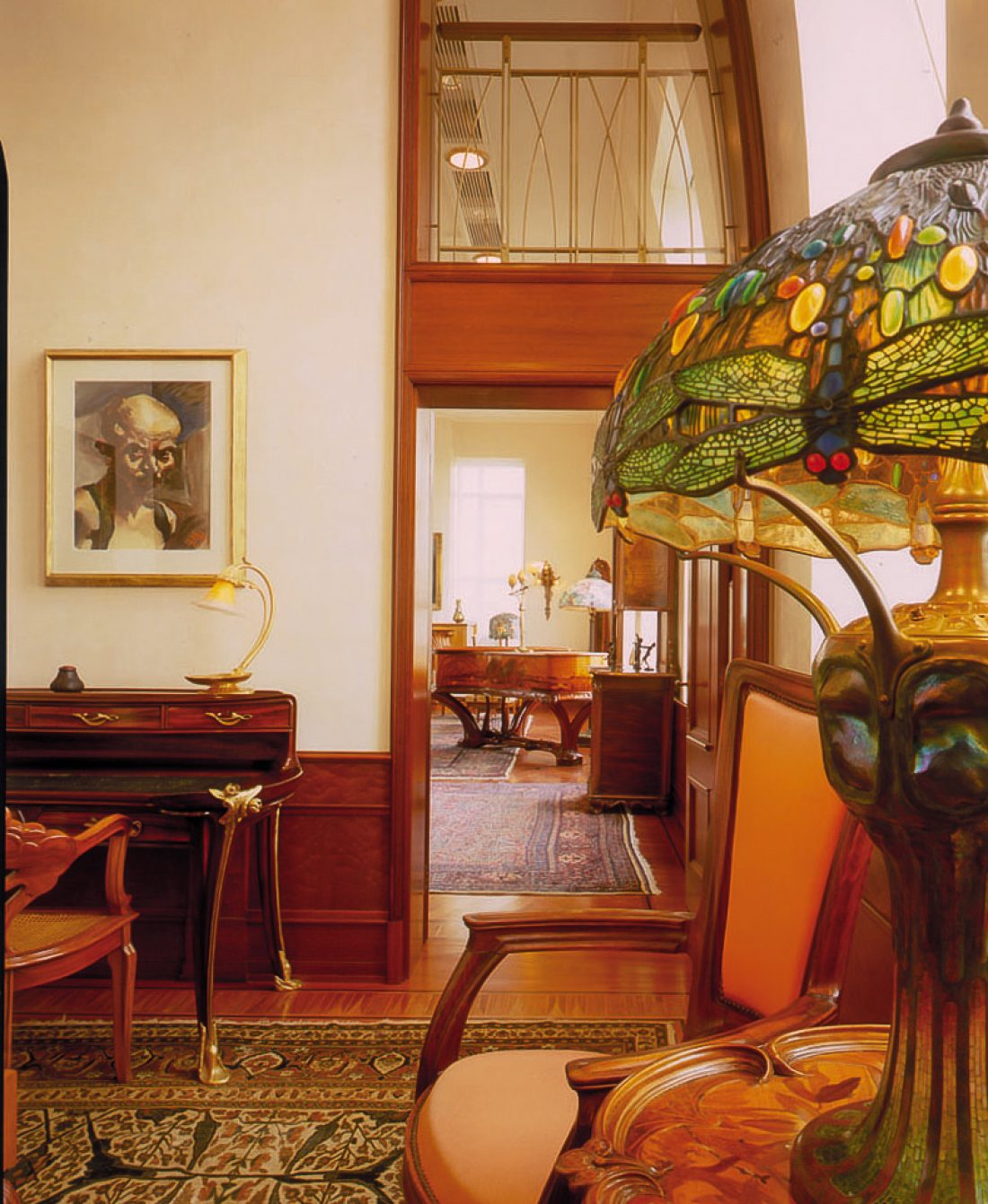 The mansard has been transformed into the core of a residence for a family and their museum-quality collection of antique “fin-de-siecle” furniture, lighting, vases and paintings, by building a new multilevel addition within and around the mansard structure.