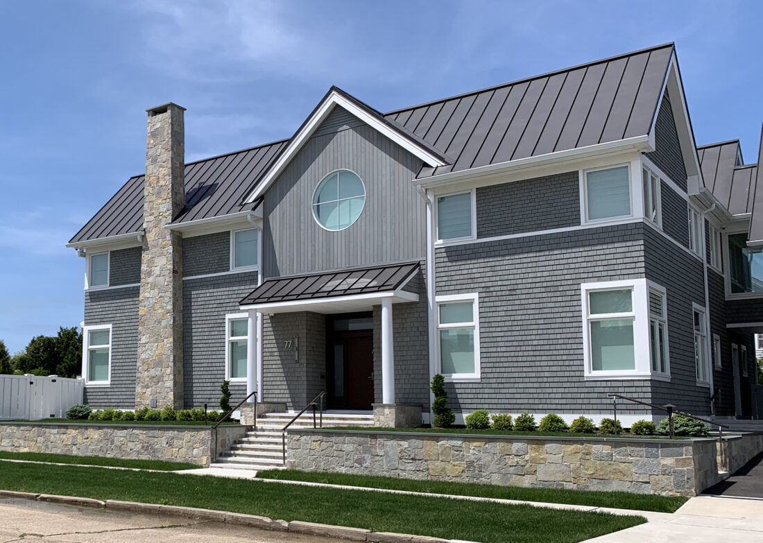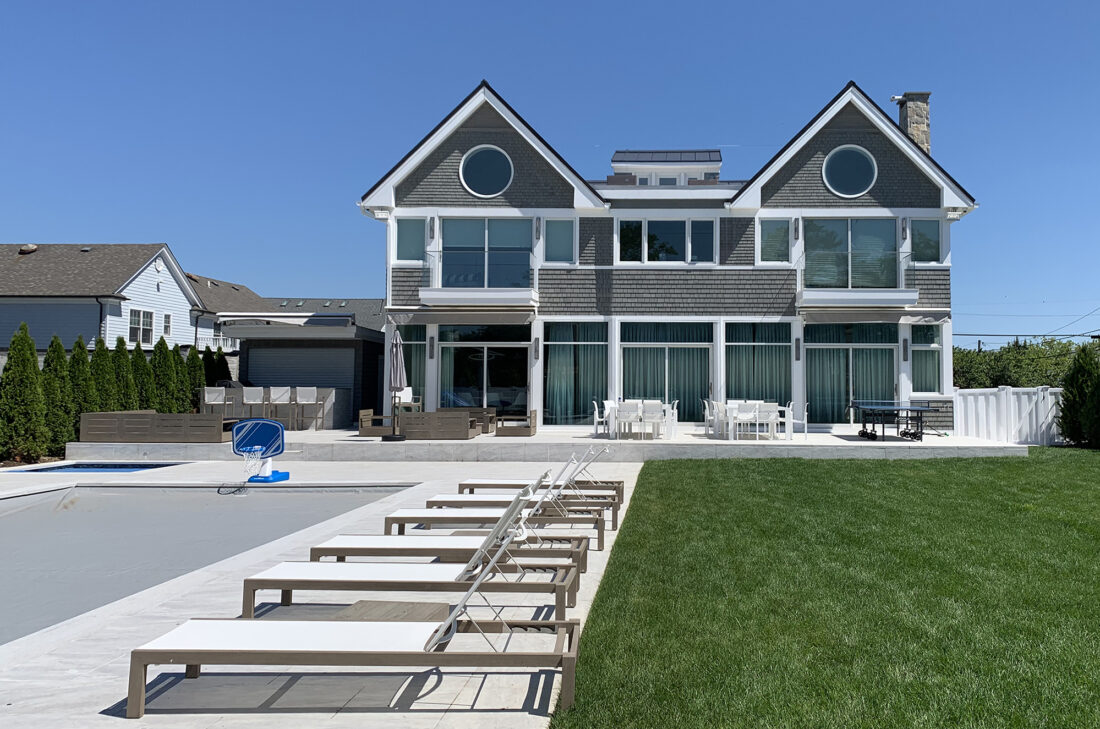 Located just outside of New York City, this multi-generational ground up beach house has something for everyone – from a pool and hot tub, basketball half court, outdoor kitchen, 9 bedrooms including a bunk room, a media room, playroom and more.