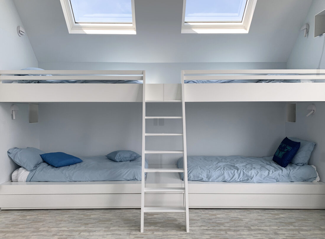 The bunkroom, which has three triple decker bunkbeds and a loft, is an awesome place for the kids to hang.
