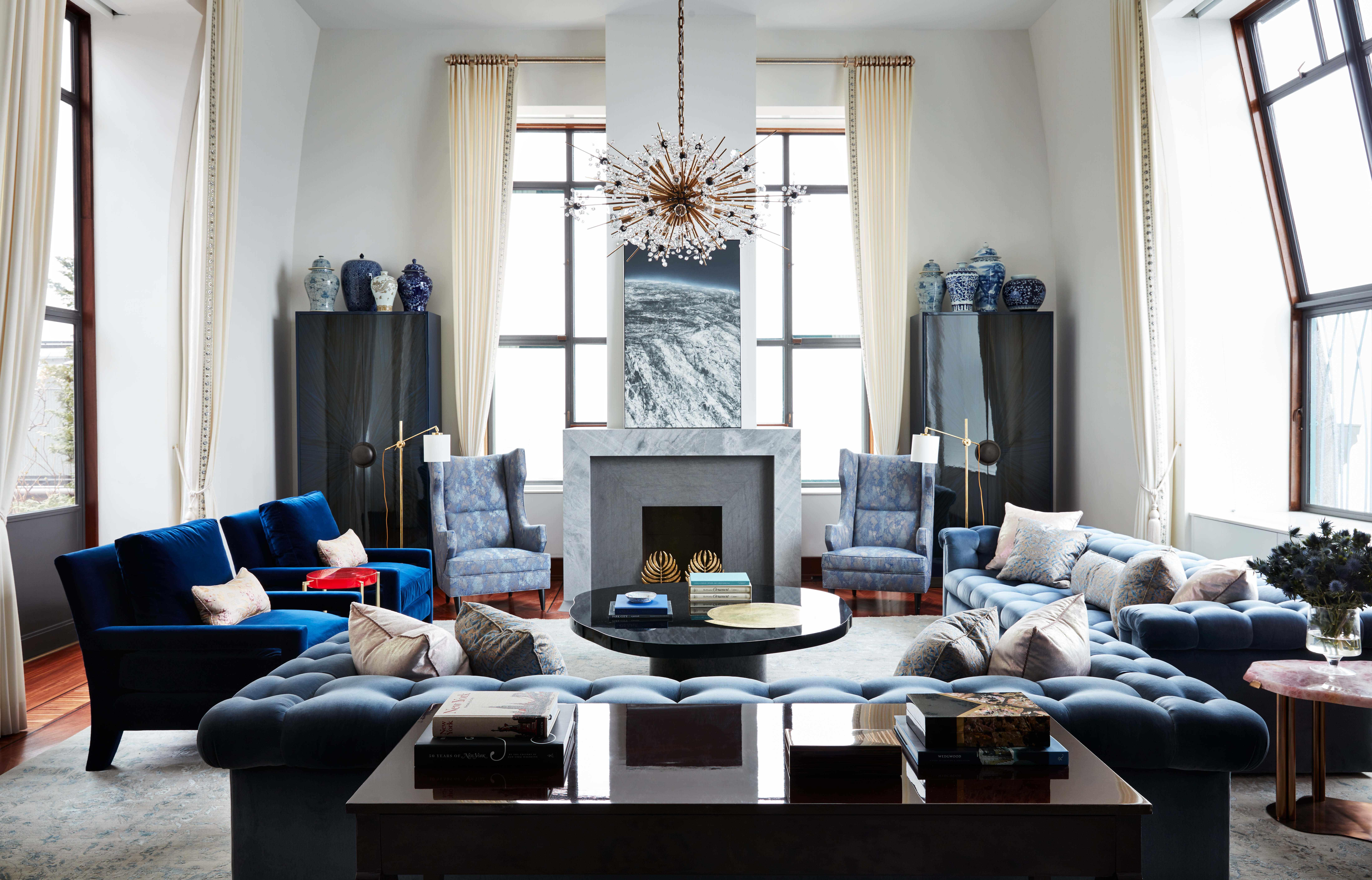 Two outdated penthouses were joined to make this spectacular apartment overlooking the Hudson River. Read More