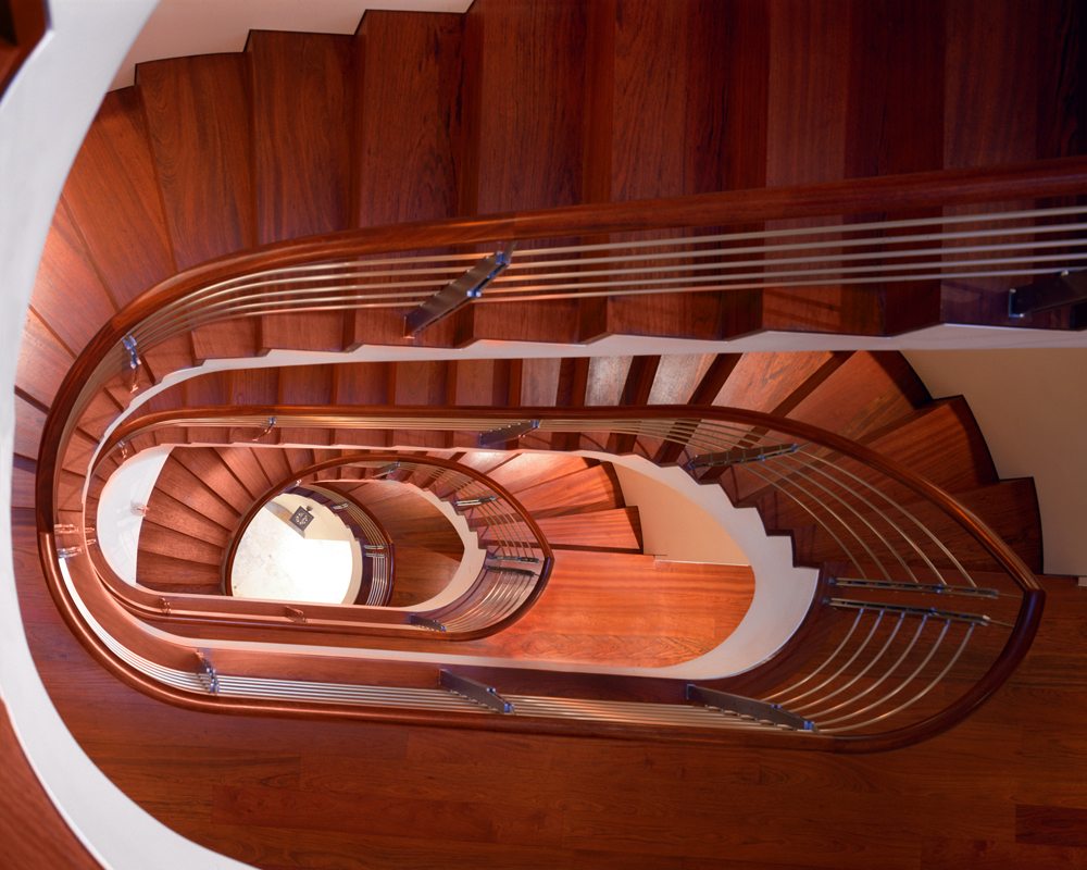 The interior core of this 6 story townhouse was reframed to create a breath-taking 6 story atrium and custom curved stair gallery capped with an oval skylight. Read More